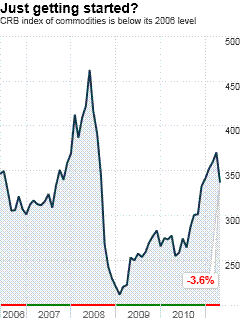 Carney's speech Monday focused on Canada's role in a changing world, but it included this aside about the price of stuff like oil, copper and grains: The expanding urban middle class in emerging economies is having a major impact on a wide range of commodities. Whether it is travel, housing or protein, consumption levels in major emerging markets are currently fractions of those in advanced economies. With convergence still a long way off, the demand for commodities can be expected to remain robust for some time. Based on the experiences of Japan in the 1960s and Korea in the 1980s, emerging Asia's energy and metals intensities should gain momentum in coming years. Commodity prices have been falling lately, of course, and they may continue to do so as the economic recovery sputters through the balance of 2011. And over time there will be a supply response that will ease prices for many goods, if not necessarily as quickly as we might like (and perhaps not at all in the case of oil, except at much higher prices). But reading Carney's remarks – and looking at a commodity index chart covering the past five years (see right) – says we shouldn't get too used to the good news of the past month. |