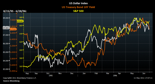 With yesterday's House vote on raising the debt ceiling (unsurprisingly, a resounding 'no'), we thought we'd use this opportunity to equip you with an in-depth guide for navigating the next few months of what is likely to be heightened volatility for global currency, bond, and equity markets. Even as the Federal Reserve's bond purchasing program (QE2) expires in June, macro markets are likely to continue to gyrate on the whims and words of a few "inspired" politicians within our nation's capital. In short, while we accept the consensus belief that the debt ceiling will eventually be extended prior to any sort of default on the US government's obligations, we do believe the events and rhetoric leading up to the passage of any deal will be anything but "smooth sailing." As such, we're preparing for heighted volatility in the months ahead. |