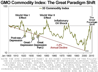 That voracious demand relentlessly pushes up prices – and Grantham emphasizes that supply and demand, rather than evil speculators or feckless central bankers, are the driving forces here, whatever posture our president might choose to take.