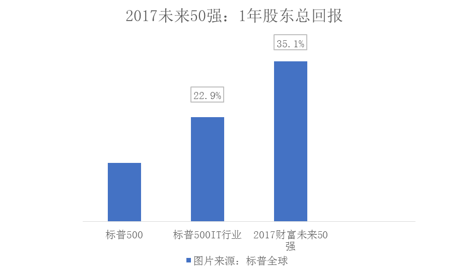 公司活力是一个长期指标,未必能从短期业绩中得到体现。即便如此,我们以往的工作已经取得了令人振奋的成绩:自去年10月评选出2017年未来50强以来,获此殊荣的公司年均收入增长达18%,股东总回报为35%,跑赢了整体市场,也超过了增长型股指企业(如图所示)。
